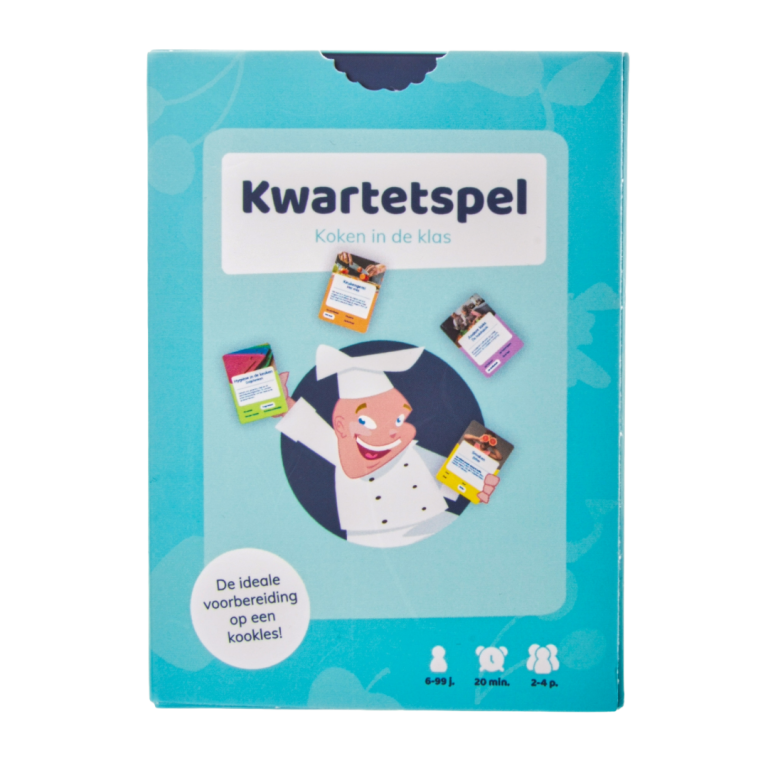 Met dit kwartet leren kinderen over koken en het beroep kok. Het spel bevat 10 kwartetten over verschillende onderdelen van koken en het koksvak. Denk hierbij aan kooktechnieken, kookmaterialen en het gebruik van de zintuigen.