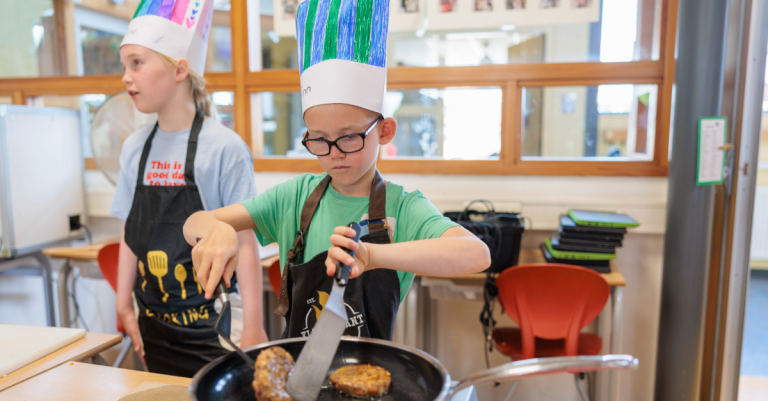 Ieder jaar schrijven we een nieuw recept om kinderen te enthousiasmeren voor koken. We werken hiervoor samen met het Voedingcentrum Nederland. Het recept valt dan ook binnen de Schijf van Vijf, met producten die goed zijn voor je gezondheid.